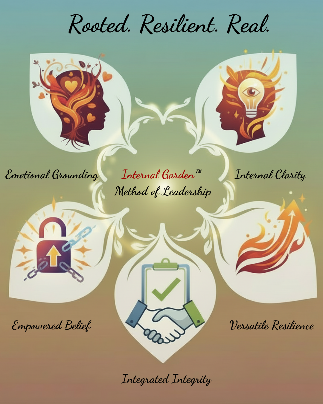 For executives and emerging leaders, external strategies fall flat without a strong internal foundation. Overcome imposter syndrome and the quiet pressure of leadership through the Internal Garden™ Method, designed to help you build resilience, scale your impact, and lead with purpose.